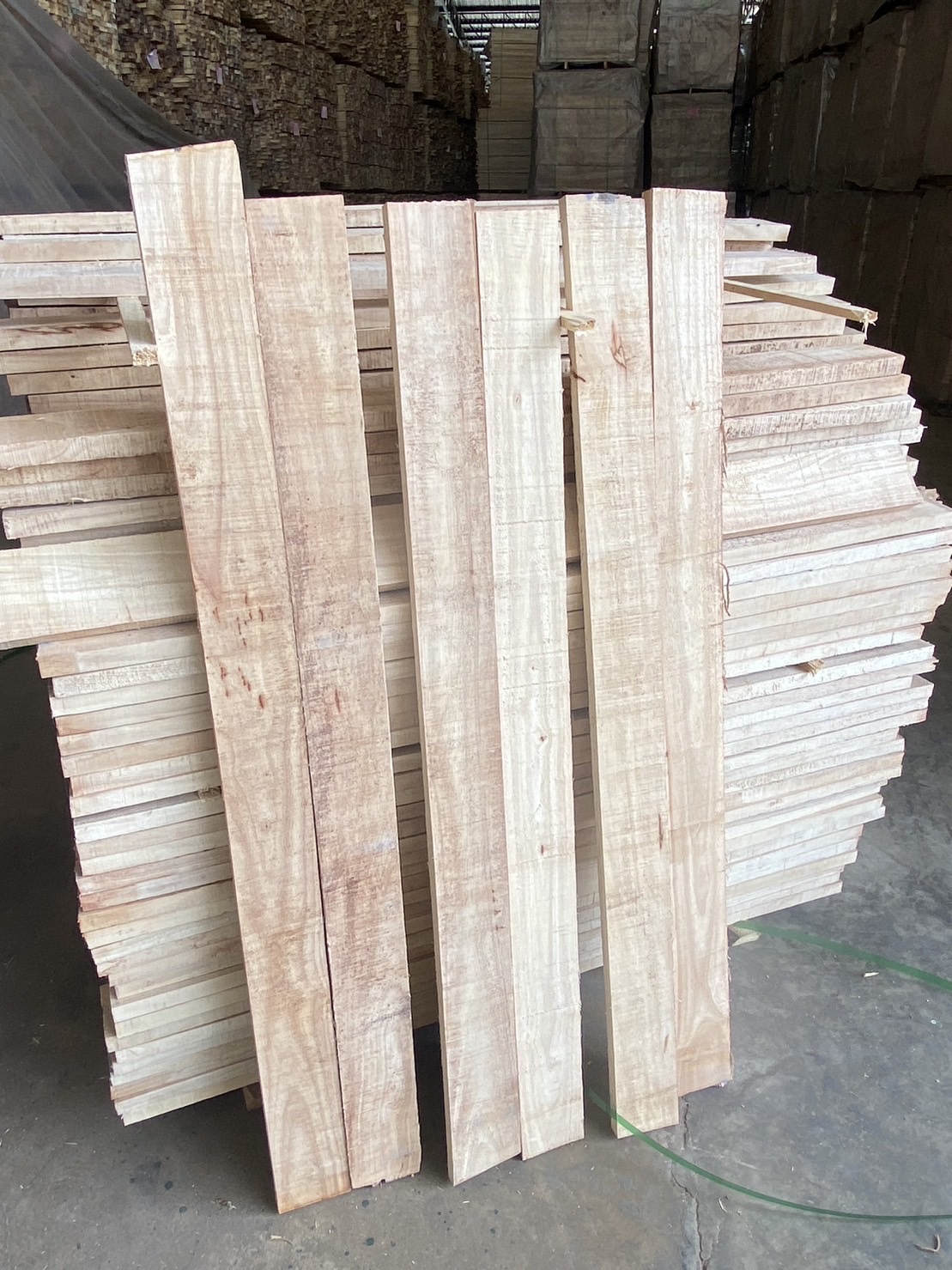 (Mẫu sản phẩm gỗ cao su Thái Lan xẻ loại AB, quy cách: 25 x 80 x 1300)